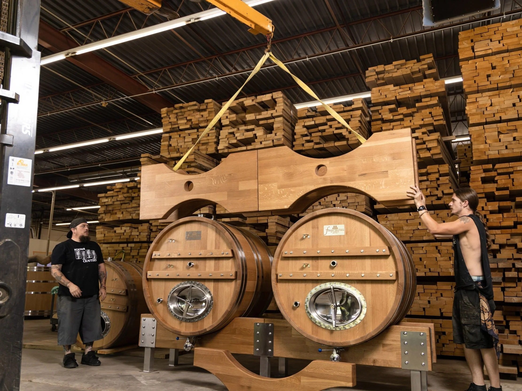 The last stop in the shop is our finishing department. Each foeder receives a final sanding and a very light topcoat. This gives the wood a beautiful ‘pop’ and also a little bit of protection from inevitable splashes in its final home.